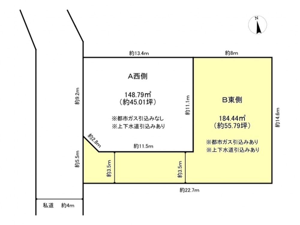- 西側 私道4m 間口約5.5m