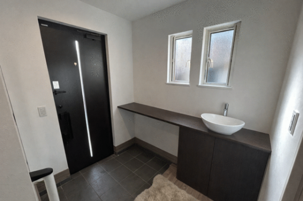 ◆玄関ポーチには手洗い・ゆったりとしたウッドデッキもあり、注文住宅ならではの利便性の詰まった建物♪