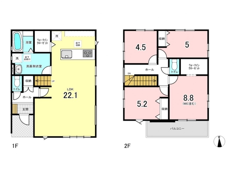 - システムキッチン、カウンターキッチン、食器洗浄乾燥機、IHクッキングヒーター、オール電化、シャンプードレッサー、洗浄便座、浴室乾燥機、追い焚き、複層ガラス、ウォークインクローゼット、モニタ付インターホン、駐車場2台分、床下収納、エコキュート、トイレ2箇所