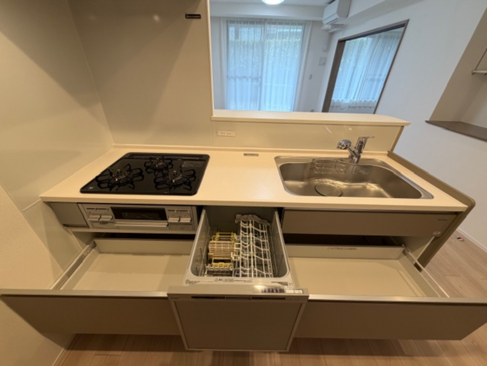 - システムキッチン、カウンターキッチン、食器洗浄乾燥機、シャンプードレッサー、洗浄便座、浴室乾燥機、追い焚き、ウォークインクローゼット、モニタ付インターホン、オートロック、ペット可、床下収納、エレベーター、専用庭・ウッドデッキ